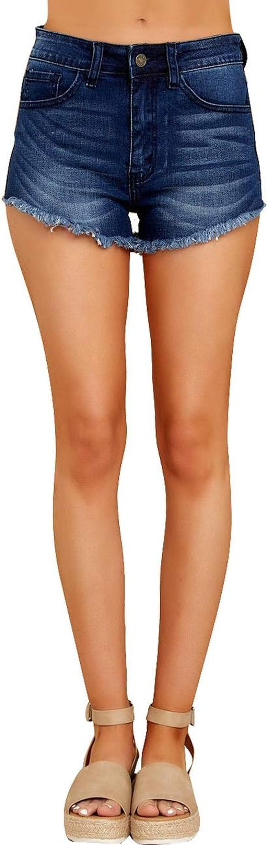 Women'S High Rise Frayed Jean Shorts Distressed Raw Hem Ripped Destroyed Denim Shorts